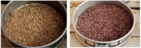 Fig. 1: vinacce essiccate di Falanghina (sinistra) e vinaccioli di Sangiovese (destra)
