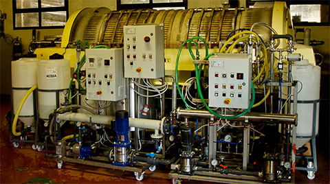 L’UF applicata sul permeato di MF consente di purificare la soluzione dei polifenoli da sostanze indesiderate come macromolecole colloidali, pectiniche, sostanze grasse (cere della buccia), anche tannini e composti aggregati di polifenoli ad alto peso molecolare. L’OI è in grado di ritenere tutte le specie chimiche presenti, compresi alcuni acidi fenolici come l’acido gallico, caffeico, p-cumarico e ferulico. Il permeato dell’OI è un’acqua purissima che viene riutilizzata in ciclo chiuso, risparmiando sui consumi idrici e sul processo di addolcimento dell’acqua di rete.
