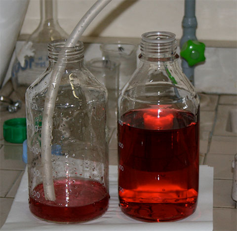 Sugli estratti grezzi di vinacce bianche e rosse la tecnica di (MF) consente di ottenere un permeato perfettamente limpido, perché privo delle componenti particellari compresi gli stessi batteri e lieviti presenti nella matrice industriale. Nella figura 5 si riporta l’immagine del permeato di MF ottenuto dalle vinacce di uva Sangiovese.