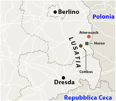 Miliardi di tonnellate di lignite sono presenti nel sottosuolo di questa remota regione, collinare, situata a circa 150 km a sud di Berlino, ai confini con la Polonia, piena di boschi di conifere, fattorie e piccoli paesini.