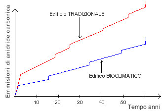 fonte: Ecoxcase http://www.ecoxcase.com/ - Confronto sulle emissioni di CO2 tra un edificio bioclimatico e uno tradizionale