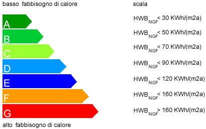 Tornando alla “bioclimatizzazione”, si vede come l’obiettivo principale dell’utilizzo delle fonti rinnovabili per l’ottenimento di un clima abitativo in linea con le esigenze stagionali è quello di contribuire al raggiungimento nelle abitazioni di un livello assai contenuto di consumi energetici; tale approccio è quello che oggi si riscontra nell’utilizzo delle “classi energetiche” degli edifici secondo il DM 26/6/2009 (vedi figura sotto).