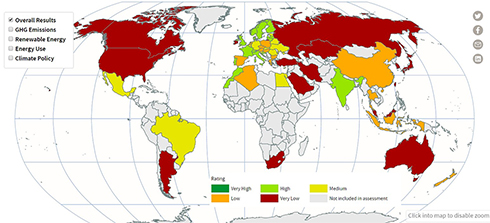 Rapporto Germanwatch[2]: la Francia al 15° posto e la Germania al 22° posto. Lo scarso rispetto degli impegni di COP 21 non è l’unica defaillance[3] tedesca in campo energetico-ambientale (anche se i Tedeschi non cessano mai di assegnare compiti agli altri, spesso ingiustificatamente). In termini relativi non è criticabile la posizione italiana (16° posto, in zona verde a differenza della Germania che è posizionata in zona gialla). In codatroviamo la Cina (41° posto zona arancione) e ancora peggio gli Usa (zona rossa al 56° posto) - che come è noto si sono sfilati dai vincoli di COP 21 - essendo, entrambi i Paesi, tra i massimi produttori di CO2 da combustione dei fossili: la Cina emette il 28%; gli USA pesano per il 15 % circa, mentre l'intera UE è intorno al 10%.