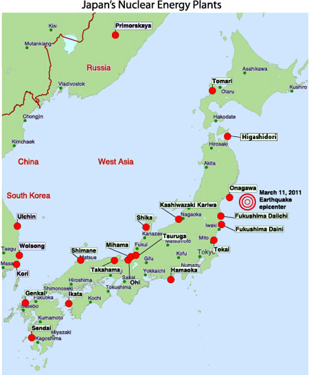 Alcuni si dicono preoccupati delle vicine centrali in Corea del Sud (3), nell’Estremo Oriente russo (2), nella Manciuria cinese (diverse), e degli impianti nucleari militari della Corea del Nord.