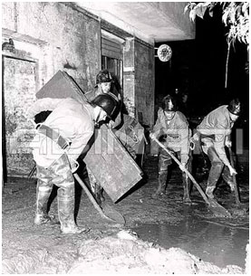 Due foto dell’Archivio Alinari dell’alluvione del 1965 a Prima Porta.