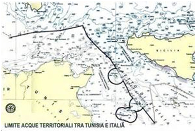 - La Tunisia, con legge del 1973, ha adottato un sistema che prevede la chiusura del Golfo di Tunisi (38 miglia di apertura) e del Golfo di Gabes (46 miglia di apertura), quest’ultimo da Ras Kapoudia all’Isola di Djerba.
