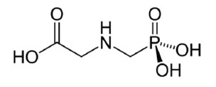 Il glifosato o glyphosate, sviluppato da Monsanto nel 1970, è il principio attivo di molti erbicidi (tra cui il “Roundup” venduto dalla stessa casa farmaceutica). È una molecola fortemente chelante, ossia in grado di immobilizzare i micronutrienti indispensabili rendendoli inaccessibili per le piante; la sua azione non è selettiva, per questo in America è venduto in abbinamento a piante OGM (prodotte sempre dalla Monsanto) create appositamente per resistere all'effetto del diserbante. In Europa invece, dove le coltivazioni OGM non sono autorizzate, è possibile usare il glifosato solo prima della semina.