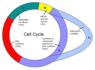 Sul finire del secolo precedente, Walther Flemming aveva messo in luce, mediante nuovi sistemi di colorazione citologica, il ruolo insostituibile della mitosi nella riproduzione cellulare nell’ambito di tessuti o comunque di popolazioni di cellule. Più o meno nello stesso periodo (1873-1884), Giulio Bizzozero - un grande italiano, medico, biologo, istologo, igienista, senatore - aveva riconosciuto la peculiarità di alcuni tessuti proliferanti dei mammiferi adulti in grado di rigenerarsi e ricostituirsi (tipicamente l’epidermide e la mucosa intestinale ed in certi casi le ossa). Nel 1951, Howard e Pelc su Vicia faba, utilizzando una sostanza radioattiva con cui marcare un precursore degli acidi nucleici necessari alla riproduzione cellulare (la timidina marcata con il tritio, isotopo radioattivo dell’idrogeno), furono in grado di distinguere un ciclo cellulare (Figura 2) che si articola in diverse regioni/periodi morfologico-funzionali [7]; nel ciclo cellulare si riconoscono quindi:
