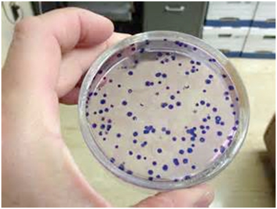 Un altro metodo, forse ancor più importante dal punto di vista biodosimetrico, venne messo a punto da Puck con i suoi collaboratori Marcus e Ceciura (1956): è il metodo di coltura in vitro di cellule di mammifero (spesso di origine tumorale o embrionale), capaci di proliferare “indefinitamente” e formare colonie (Figura 3) su una superficie plastificata in un terreno di coltura liquido appropriato (in genere addizionato con siero), che permette una titolazione esatta del numero di cellule vitali prima (controllo) e dopo il trattamento [8]: il metodo rende quindi possibile, seminando nelle piastre cellule trattate (irradiate) la determinazione quantitativa di curve dose-effetto riguardanti la morte cellulare, dette appunto curve di sopravvivenza.