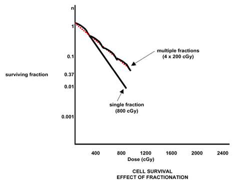Si tratta di un dato interessante dal punto di vista della terapia antineoplastica dove la dose del trattamento viene frazionata, soprattutto allo scopo di cercare di diminuire il danno sui tessuti normali. Elkind et al. [15] hanno anche dimostrato che questo tipo di riparazione è difficilmente inibibile. Altri fenomeni appaiono legati al frazionamento della dose: