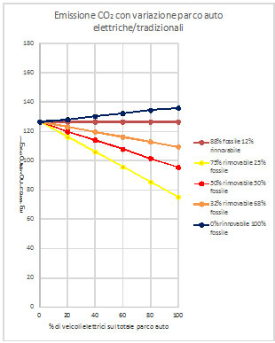 Nel primo caso (tutto carbone) il contributo minimo di rinnovabili perché l’auto elettrica possa risultare vantaggiosa dovrebbe salire al 35%. Particolarmente significativo è il secondo caso: se si impiegasse solo metano, l’auto elettrica sarebbe conveniente per l’ambiente anche in assenza di fonti rinnovabili!