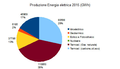 Sì che (Fig. 1) nel sistema energetico italiano con una quota di rinnovabili maggiore o uguale al 12% della produzione elettrica interna (eravamo in realtà nel 2015 già al 32%)[6] converrebbe accrescere la quantità di veicoli elettrici circolanti. Tale percentuale minima è piccola perché in Italia già oggi il mix di energia da combustibili fossili (29% carbone e petrolio, 39% gas naturale, Fig. 2) è a relativamente alta decarbonizzazione.