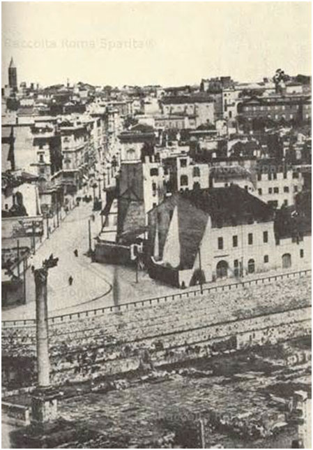 Fig. 5. Lo sbocco di Via Cavour davanti al Foro Romano quando non esisteva ancora Via dei Fori Imperiali.