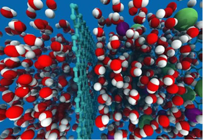 Alcune ricerche hanno mostrato che la struttura molecolare del grafene può essere gestita in modo da creare fori di qualsiasi dimensione sulla sua superficie, realizzando così una sorta di setaccio molecolare. Tale caratteristica consentirebbe di utilizzare il grafene nella desalinizzazione dell'acqua in modo nettamente più efficiente di quelli utilizzati ad oggi che richiedono una pressione elevatissima, con conseguente alto consumo di energia, per forzare l’acqua attraverso membrane che sono circa un migliaio di volte più spesse del grafene.