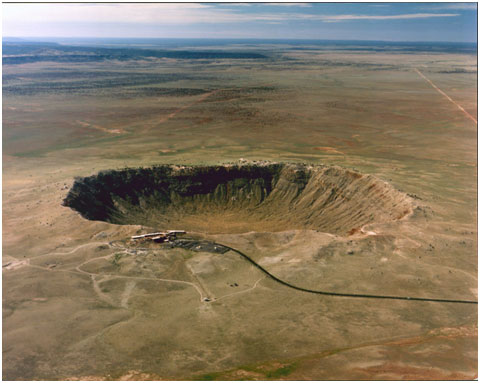 Gli oggetti che rappresentano un rischio per la Terra sono chiamati NEO, acronimo di “Near Earth Objects”; la loro pericolosità è testimoniata dall’estinzione dei dinosauri causata dall’impatto di un asteroide del diametro di 10 km, avvenuta 65 milioni di anni fa nel golfo del Messico vicino Chicxulub nello Yucatan. Quell’evento causò la quinta ed ultima estinzione di massa della storia biologica della Terra, la sola attribuibile all’impatto di un meteorite. Altri crateri noti sono quello di 70 chilometri di diametro che ospita il lago Manicougan in Canada (facilmente reperibile con Google Earth), oppure il Barringer Crater in Arizona (figura 2), causato, 49.000 anni fa, dall’impatto di un asteroide simile a quello di Tonguska (40-50 metri di diametro) che, avendo un nucleo di ferro, è riuscito ad attraversare l’atmosfera ed a scavare un cratere di 1.2 chilometri di diametro e una profondità di 160 metri, mostrando così che, asteroidi simili per dimensioni, possono avere effetti diversi se sono fatti di materiali diversi. Sono stati anche osservati impatti sugli altri pianeti del sistema solare; spettacolare è stato quello della cometa Shoamaker Levy 9 su Giove, avvenuto nel luglio del 1994, provocando schizzi alti migliaia di chilometri.