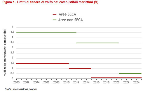 In Italia le norme UE in materia di prevenzione dell’inquinamento atmosferico connesso alla navigazione sono state recepite nel Dlgs. n. 152/2006 e s.m.i.. Rispetto alla scadenza del 1 gennaio 2020, al comma 1 dell’articolo 295 del Dlgs. n. 152/2006 e s.m.i si prevede che dal 1° gennaio 2018 per il mare Adriatico e il mar Ionio e dal 1° gennaio 2020 per le altre zone di mare, si possa applicare un limite dello 0.1%, a condizione che gli Stati membri dell'Unione europea prospicienti le stesse zone di mare abbiano previsto l'applicazione di analoghi limiti.