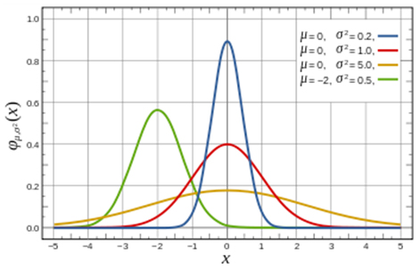 Nella teoria della probabilità, si ottiene comunemente una distribuzione continua di probabilità, detta distribuzione normale o Gaussiana, dalla tipica forma a campana, che è una funzione che indica la probabilità che ogni osservazione reale cada fra due limiti reali. Da questa distribuzione è possibile ricavare parametri importanti (media, moda, mediana, deviazione standard, errore standard) per comprendere il ruolo di alcune variabili.