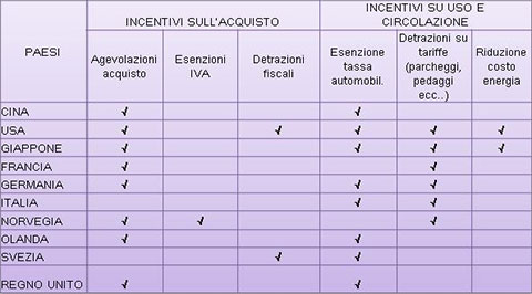 In tutti i paesi coesistono sia incentivi diretta sulla vendita, sia incentivi all’uso e alla circolazione. Tipicamente i primi sono gestiti a livello nazionale, mentre i secondi sono in mano alle amministrazioni locali (regioni e comuni).