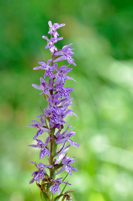 Dactylorhiza maculata (L.) Soó subsp. saccifera (Brongn.) Diklic. Pianta perenne alta dai 25 ai 90 cm, il nome generico dactylorhiza deriva da due parole greche: “dito” e “radice” e si riferisce alla forma dei suoi tuberi; mentre il primo nome specifico “maculata” è riferito alle foglie macchiate e il secondo nome “saccifera”, dal latino saccus = a sacco, per la forma dello sperone.